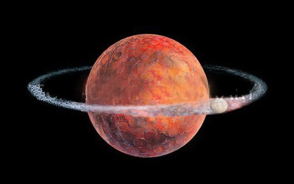 在地球形成的初期,有一颗体积如火星般大小的星球与地球碰撞