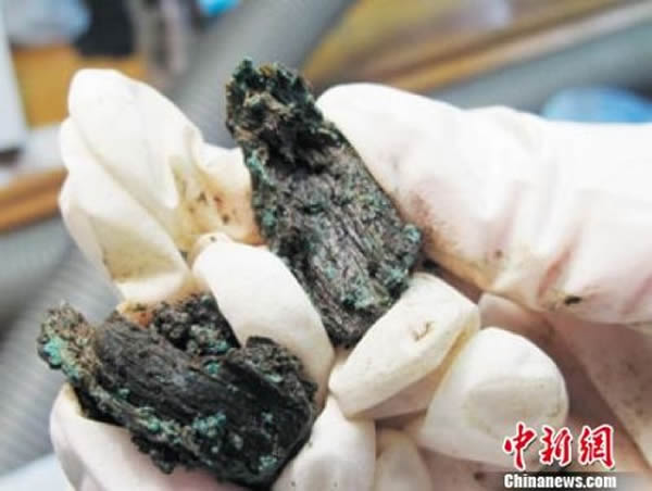 记者从陕西文物部门获悉,陕西省考古研究院在陕西临潼区湾李村共发掘墓葬312座,特别重要的是在M208的铜敦中保留盆满钵溢的肉制品,通过 红外分析和蛋白质组学方法鉴定为黄牛的肉,肉制品虽然已碳化,但仍能用肉眼看到一根一根的肉丝,保留的腱膜还有弹性,这应该是我国目前保留最早的墓葬中陪 葬的肉制品。