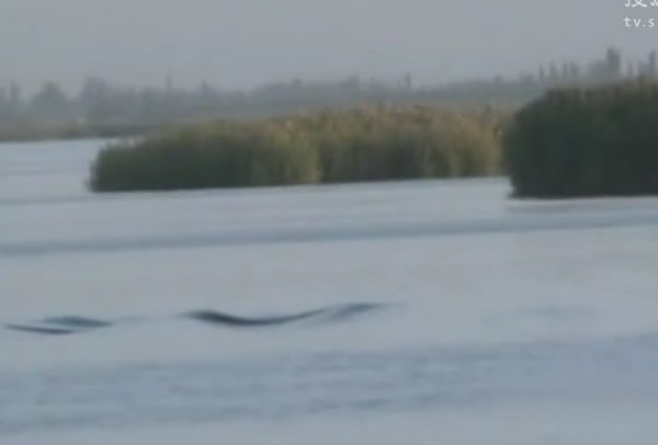 最近,在巴楚县红海水库距岸边100米左右的水库里,出现一种不明水生物。记者随机拍下了不明水生物翻浪的瞬间。