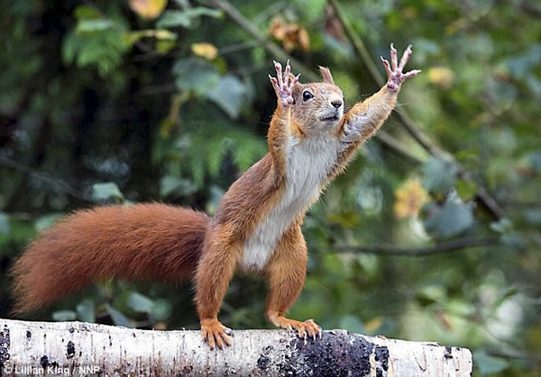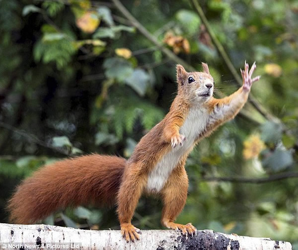 据英国《每日邮报》10月20日消息,英国野生动物中心一只红松鼠得到坚果后疯狂热舞,惹人喜爱。 英国萨里郡一位野生动物爱好者莉莲·金拍下了这些照片。莉莲称,萨里郡林菲尔德附近的英国野生动物中心人工养殖20只红松鼠,安东尼最引人注目。安东尼在工作人员前来喂食时总是在空中挥舞他的爪子上蹿下跳,以便第一个抢到榛子。得到坚果的安东尼满心欢喜,扭动身子跳起舞来,舞步堪比当年《周末夜狂欢》的男主角约翰·特拉沃尔塔。