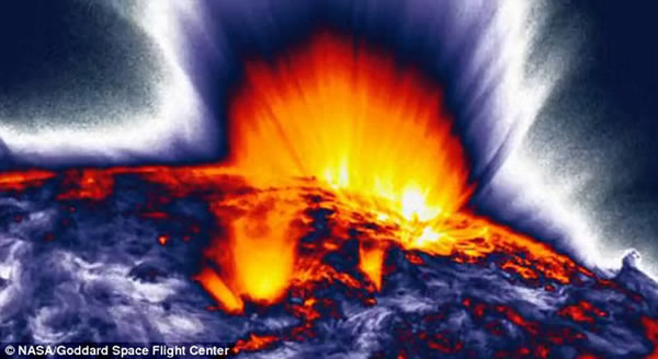 美国宇航局拍摄到太阳表面出现绚丽的爆炸喷射