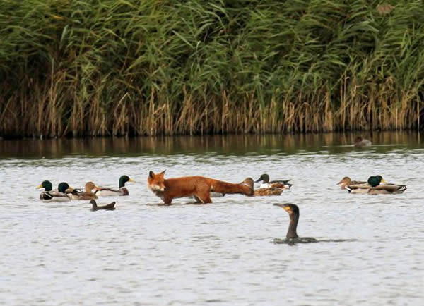 据英国《每日邮报》10月22日报道,近日在英国巴恩斯的一片湿地中,一只饥肠辘辘的狐狸看到在池塘中游泳的鹅群后,以为可以饱餐一顿,扑通一声跳入水中。令人意想不到的是,以狡猾著称的狐狸居然被鹅群打败了。