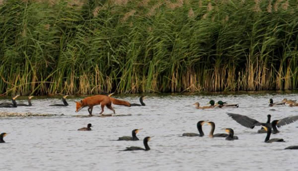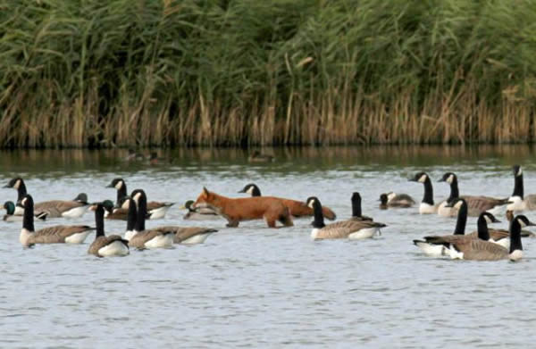 英国巴恩斯湿地一只狐狸居然被鹅群打败