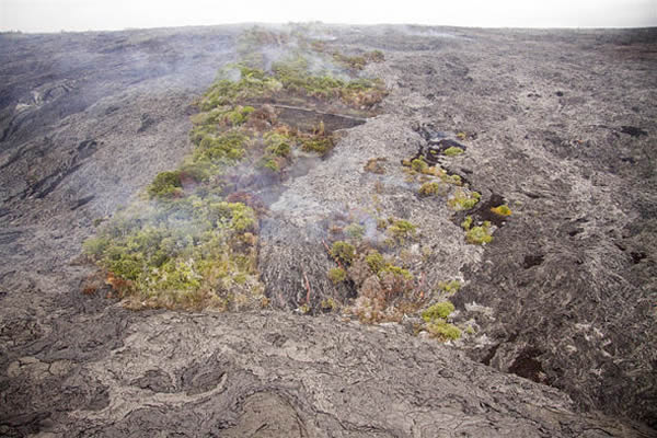 熔岩的其余部分通过熔岩管继续流向斜坡底部。据美国地质调查局夏威夷火山观测站报道,熔岩流目前正通过海岸平原流向海洋。