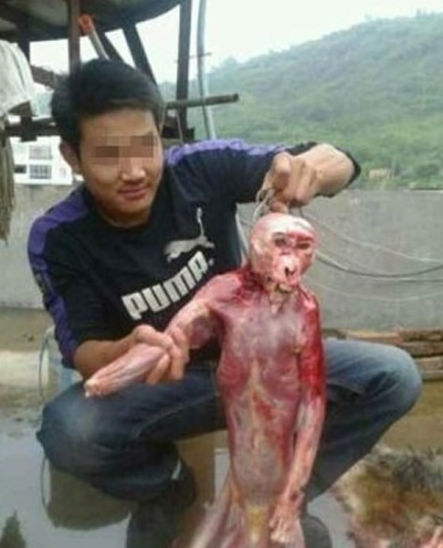 目击者说:男子杀猴剥皮