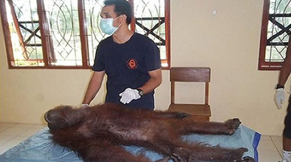 环保人士是在一个油棕榈种植园的发现这只雌性红毛大猩猩,并为其起名为安(Aan)。它的一只眼睛已经失明,全身都是枪伤,头部被打进37颗气枪子弹,身上则有67颗子弹。