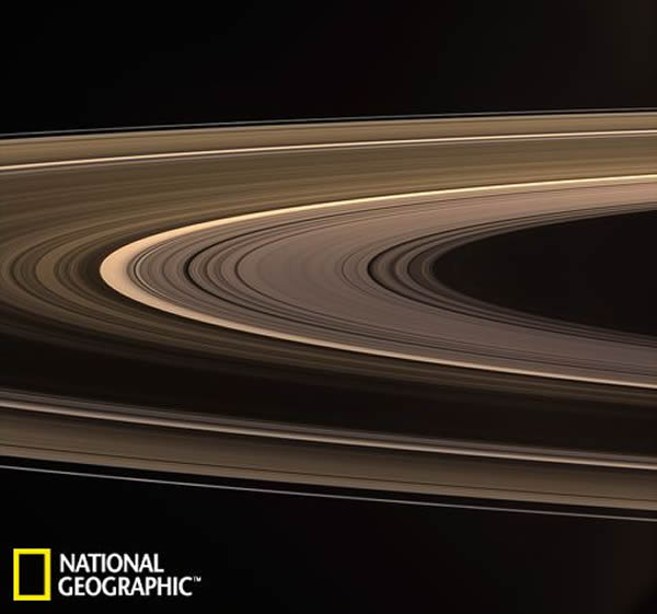 土星周围密集的光环,包括光环之间的间隔带在这幅照片中展现得格外清晰。这幅自然色彩的照片由“卡西尼”号太空船于2008年拍摄。对这些高密度的光环的研究可以揭秘这些光环形成和发展的过程。