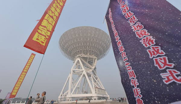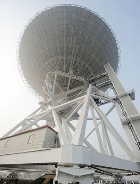 建设大型射电望远镜系统,是一个国家科技实力的体现。该射电望远镜口径65米,高度70米,重约2700吨,主反射面面积为3780平方米,相当于9个标准篮球场。它能在方位和俯仰两个方向转动,以高精度指向需要观测的天体和航天器。