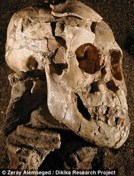 塞拉姆的头骨。考古发掘出的塞拉姆的身体其余部分表明人类祖先从树上走下地面比预计时间晚。