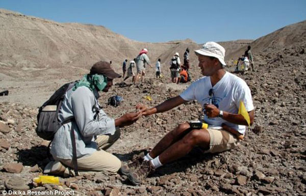 阿莱姆塞吉德博士(右)正在埃塞俄比亚的迪基卡工作,正是在这里,他发现了塞拉姆的骸骨。