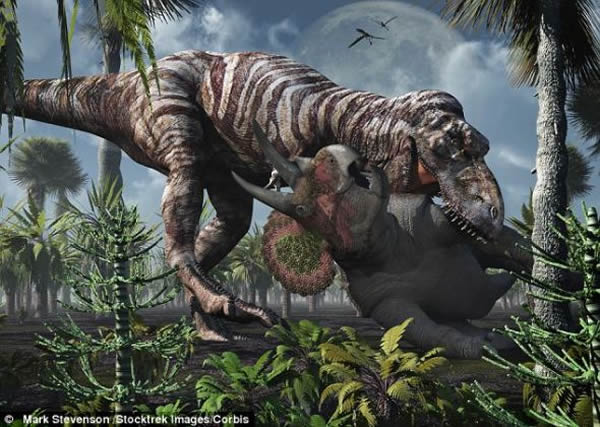 根据美国科学家提出的一项新理论,霸王龙会将三角龙“斩首”,而后享用富含营养的颈部肌肉