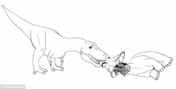 根据美国科学家提出的一项新理论,在将三角龙杀死之后,霸王龙会利用强有力的爪子和颈部肌肉扯掉这种巨型有甲猎物的脑袋。通过对美国的三角龙化石进行研究,科学家发现侏罗纪时期的顶级捕食者霸王龙首先杀死猎物,而后撕掉猎物的脑袋,享用隐藏在盔甲下面富含营养的颈部肌肉。