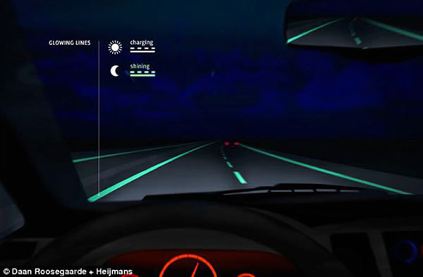 设计者表示,真正意义上的智能高速公路距人们的生活还比较遥远。不过,从明年开始,荷兰的公路将用一种光致冷光粉末涂上道路分隔线,该材料可在阳光下进行充电,在夜晚就能发光照亮公路,维持时间可高达10小时。
