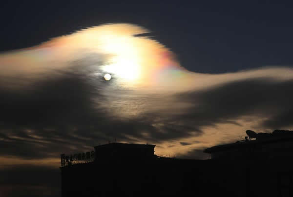 京城天空现祥云奇景 来源: 神秘的地球 时间:2012年10月31日 12:32 京城天空现祥云奇景 京城天空现祥云奇景 10月31日早晨8时许,记者在北京宣武门拍摄到一幅祥云美景图:太阳光从一片云彩后面照射下来,云彩在阳光映衬下形状酷似大鹏展翅,美不胜收。 新华社 刘卫兵 上一篇 下一篇 TAG: 祥云
