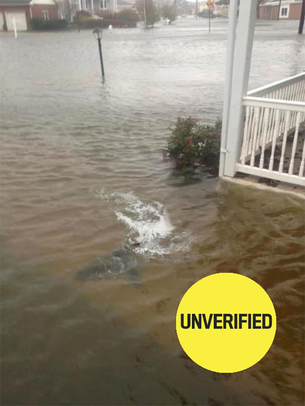 报道称,此次飓风使电线被吹断,纽约一架起重机也被大风损坏,但到目前为止,这一天中最具戏剧性的照片可能便是鲨鱼在前院中游泳了。报道还称,如果鲨鱼在前院中游泳的证据不够,此次风暴最开始造成的损坏也足以显示此次飓风的严重性。