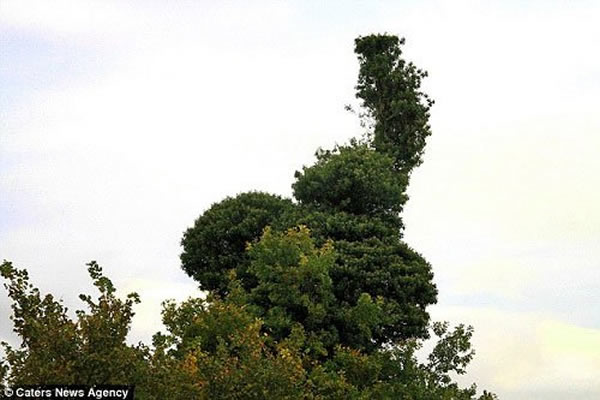 英国一棵奇特的树 来源: 神秘的地球 时间:2012年11月02日 11:29 这棵橡树被常春藤围绕,外形犹如扬起鼻子的大象 日前英国一棵奇特的树引起了人们的好奇,这棵树从上到下都被常春藤包裹,外型犹如一只扬起鼻子的大象。 据英国男子肖恩说,这棵树是一棵橡树,树身被常春藤环绕。常春藤不断生长,使这棵树的外型也发生了奇妙的变化。最高处的树干犹如大象扬起的长鼻子,而树身则像大象的身体和耳朵。 肖恩说,不少路过此地的人都发现了这棵奇特的大树,而整棵树缓慢生长了数年,才变成这种形状。 中国新闻网 上一篇 下一篇 TAG: 英国