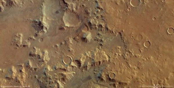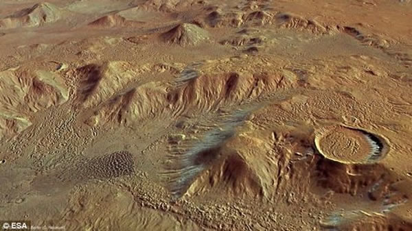 据英国每日邮报报道,目前,7月6日欧洲宇航局火星快车探测器高分辨率立体相机拍摄最新图像显示火星表面美丽的地貌,同时表明火星表面之下普遍存在水资源的证据,暗示着当前仍存在着巨大的地下冰川。