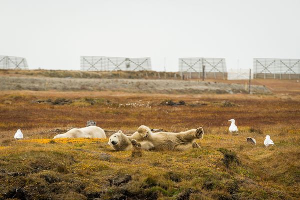 九月初,北极熊和海鸥成群结队地在卡克托维克的草原上寻找大块鲸肉。因纽皮特人通常会把切割好的大块鲸肉从海滩拖到草地上,捕鲸船船长在那里对鲸肉进行分配。从上世纪70年代甚至更早,北极熊就开始以这些猎物残骸为食。“这并不是什么新鲜事,”“北极熊国际”组织的阿姆斯特拉普说,“与以往不同的是,今年熊的数目多了很多。”