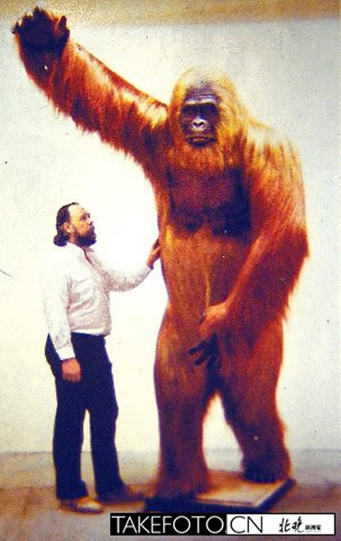 美国人类学家根据中国的巨猿化石复原的巨猿。到底有没有“野人”存在?王方辰打开了记忆的闸门。据他介绍,中科院古人类与古脊椎动物研究所的专家们认为,通常在学术研究上称为“人形动物”,而“野人”这个名字是大众的俗称,不够严谨,但后来也就约定俗成地这么称呼这种动物了。