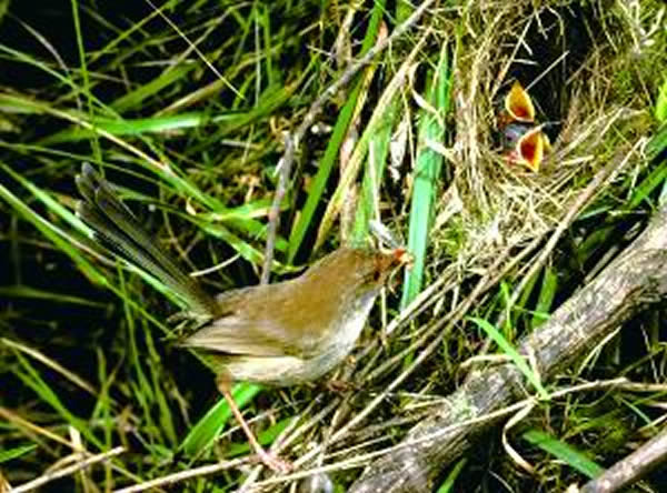 这种“小把戏”能够帮助壮丽细尾鹩莺父母们区分出自己的宝宝,因为有两种布谷鸟经常会侵入它们的鸟巢。而且,壮丽细尾鹩莺雌鸟也会教它的伴侣这种“口令”。