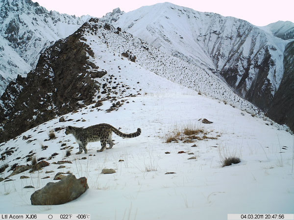 雪豹,由于其经常在雪线附近和雪地活动而得名,在我国又被称为艾叶豹、荷叶豹、草豹,是一种大型的猫科食肉动物。雪豹种群目前主要分布在中亚12个(或13个,缅甸无确切分布记录)国家。其中中国拥有大约三分之一的雪豹种群以及一半以上的栖息地面积。由于非法捕猎等人为因素,目前雪豹的数量正急剧减少,已被列入国际濒危野生动物红皮书,在我国,雪豹的数量甚至要少于大熊猫。