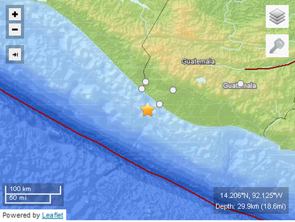 危地马拉再发6.2级地震 来源: 神秘的地球 时间:2012年11月12日 14:06 危地马拉再发6.2级地震 美国地质勘探局网站消息,北京时间2012年11月12日6时15分,中美洲国家危地马拉沿海地区发生里氏6.2级地震,震源深度29.9公里。 据美国地质勘探局网站消息,当地时间2012年11月11日16点15分,危地马拉钱佩里科西南偏西24公里处发生里氏6.2级地震。 据悉,当地时间11月7日,危地马拉发生里氏7.4级的强烈地震,并波及邻国墨西哥和萨尔瓦多,目前已造成至少52人死亡、数百人受伤、多座房屋坍塌。 中新网11月12日电 上一篇 下一篇 TAG: 地震 危地马拉