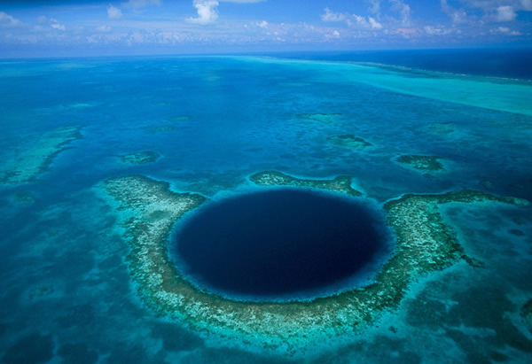在伯利兹海面上有很多蓝洞,但是邻近灯塔礁(Lighthouse Reef)的大蓝洞是最著名的一个,也是最适合潜水的地方。大蓝洞直径约1000英尺(304米),深约400英尺(122米),在伯利兹以东50英里(90km)处。