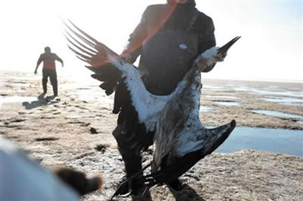 “现在,在北大港湿地,还有几十只存在中毒现象。”野生动物保护国际组织对外联络员康大虎说。