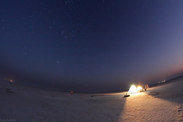 天文摄影爱好者阿贾伊塔尔瓦(Ajay Talwar)在印度西北部沙漠拍摄到令人惊讶的夜空精彩照片,本张照片拍摄于2011年1月27日。当时阿贾伊塔尔瓦在沙漠中露营,清晰的图像中可以看到位于地平线附近的天狼星,也可以看到夜空中的猎户座、金牛座还有双子座等。