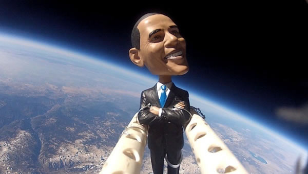 美国总统奥巴马“娃娃玩具”通过高空气球送入平流层