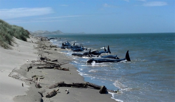 28头领航鲸在新西兰的黄金湾海滩搁浅 来源: 神秘的地球 时间:2012年11月16日 12:20 28头领航鲸在新西兰的黄金湾海滩搁浅 当地时间15日上午,有28头领航鲸在新西兰的黄金湾(Golden Bay)的海滩搁浅,目前有12头鲸鱼已经证实死亡,当地机构将对剩余的16头鲸鱼实施“安乐死”。 据报道,在当地时间早上9点左右,一名男孩在海滩附近玩耍,发现有许多鲸鱼搁浅。当地动物保护机构赶来发现,一共有28头鲸鱼搁浅在近2公里的海滩上。 目前,已经证实有12头鲸鱼已经死亡,动物保护机构经过咨询有关专家后决定,将在当天下午对剩下的16头鲸鱼实施“安乐死”。 中新网11月15日电 上一篇 下一篇 TAG: 领航鲸 新西兰