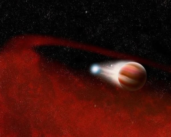 当空间望远镜的数据显示在SDSS 0303+0054双星系统周围存在不可思议的尘埃带信号时,研究人员感到非常惊讶,同时这也是迄今发现的首例“极限”双星系统。基于红外波段上对双星系统的调查,美国宇航局广域红外空间望远镜天文学家计算出外围尘埃环的延伸距离相当于两倍的太阳半径,大约在金星轨道之外。天文学家还估计了尘埃环的总质量,相当于半径数十公里(略小于洛杉矶大小)的小行星。科学家认为尘埃盘的起源特别神秘,因为在大质量恒星演化过程的红巨星阶段,行星、小行星和彗星并不会在该距离上存在。