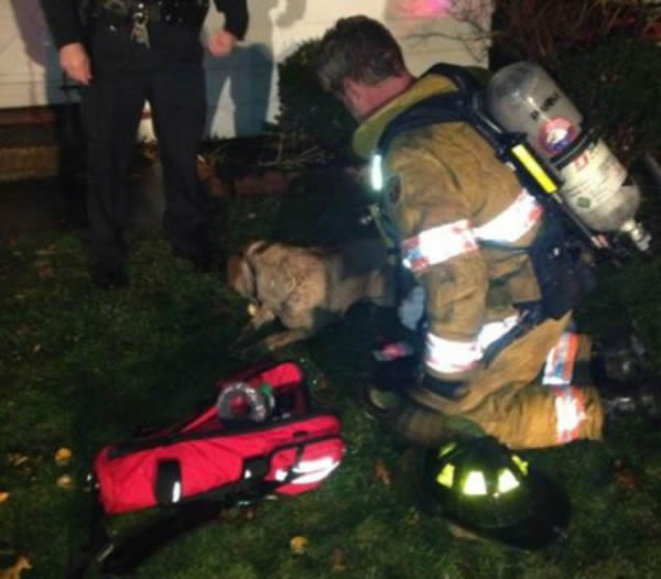 据悉,当时失火住宅的屋主已经逃离现场,但其宠物狗还被困在烈火和浓烟中。十分喜欢狗的吉米和几位队员提着水管冲进火场后,在寻找火源时听到了呜咽声。他们循声找去,终于在壁炉旁发现了昏迷的小狗。