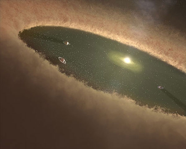 在天文学界,有两种关于太阳系内行星形成的理论:一种是被广泛接受的“核心吸积”(core accretion)理论,这种理论能很好解释“类地行星”的形成,但在解释像土星这样的巨大气态行星形成时却遇到了困难;第二种被称为“吸积盘不稳定” (disk instability)理论,这种理论能够解释巨大气态行星的形成。
