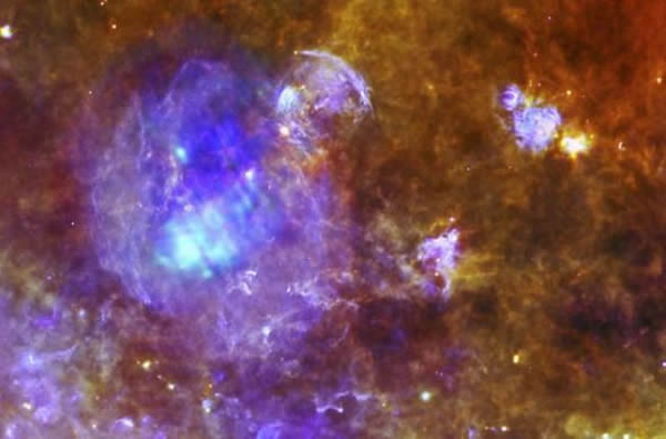 根据宇航局公布的W44图像,这个超新星残余可能已经发生爆炸,但仍拥有可怕的力量,席卷星系内的星际物质并照亮大气。宇航局在其网站上表示:“W44是一个巨大的紫色球,占据了这幅图像的左手侧,直径大约在100光年左右。XMM-牛顿望远镜获得的数据显示,这个超新星残余充满来自于超热气体的X射线辐射。”