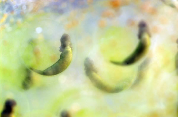 而另一种名为zooxanthellae的微生物也能进行光合作用,并且还能与很多珊瑚物种建立一种共生关系。盖茨堡学院两栖动物的研究人员瑞恩-克内伊(Ryan Kerney)表示,生长于美国东南部的蝾螈一到春天就会开始聚集繁殖,它们所有的卵都会呈现淡绿色,而某些藻类就会生活在这些卵中进行发育。