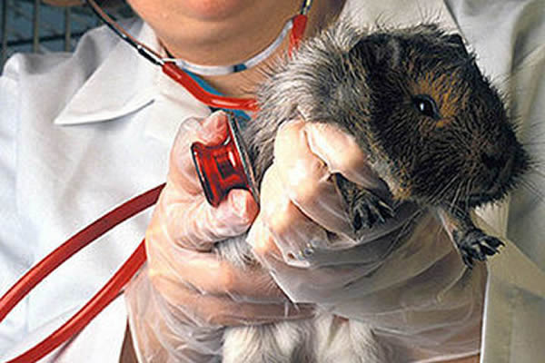 在麻省理工学院与哈佛大学的一项联合实验中,豚鼠的内耳可以充当电池使用。上图中一位动物医学官员正在对一只不相关的豚鼠进行检查。