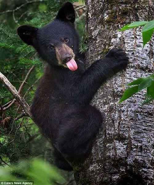 美国一淘气小黑熊爬树吐舌“做鬼脸” 来源: 神秘的地球 时间:2012年11月22日 11:02 美国一淘气小黑熊爬树吐舌“做鬼脸” 美国一淘气小黑熊爬树吐舌“做鬼脸” 日前,一位摄影师在美国明尼苏达州的森林中拍摄到了有趣的一幕。一只调皮的黑熊幼崽爬上一棵大树后,竟回过头朝摄影师吐舌头,好像在向他“做鬼脸”,可爱的样子让人忍俊不禁。 摄影师称,当时他正在拍摄黑熊一家,只见这只调皮的小熊爬到树上,还朝他吐舌头。他本担心自己会把小熊吓跑,但没想到小家伙的胆子还挺大,继续吐着舌头,好像在说“你抓不到我”。 上一篇 下一篇 TAG: 黑熊