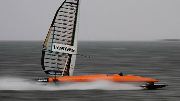 “风帆火箭2号”高速帆船本月16号在纳米比亚的沃尔维斯湾创下了世界帆船速度纪录,在风速25节(46.3公里每小时)下,最高速度到达了64.78节(119.95公里每小时)。其500米直道航程内的平均速度达到了59.23节(109.65公里每小时)。这一速度比绝大部分非竞赛类快艇都还要快,而这艘完全依靠风力驱动的船达到这一速度无需消耗一滴汽油。