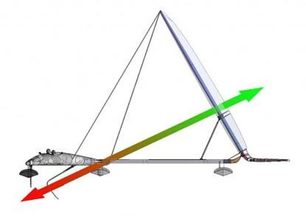 风帆火箭2号的主帆和龙骨的力平衡示意图