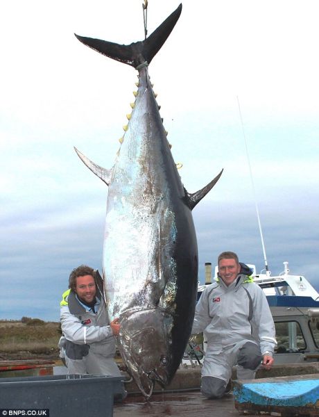 一位渔民捉到一条重达1000磅(约合453公斤)的金枪鱼。30岁的马克-托沃斯用了2个小时全力对付这条大鱼,才把它拖到加拿大新斯科舍省坎索海岸附近水域的水面上来。他的努力和等待都是值得的,因为这条鱼有望在日本卖出2万英镑的高价,被制成2万块寿司。