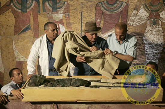 Zahi Hawass (center) supervises the removal of a wooden box containing King Tutankhamun's mummy from a stone sarcophagus. The boy pharaoh was moved from the burial room to an antechamber in his underground tomb near Luxor, Egypt, on November 4, 2007.