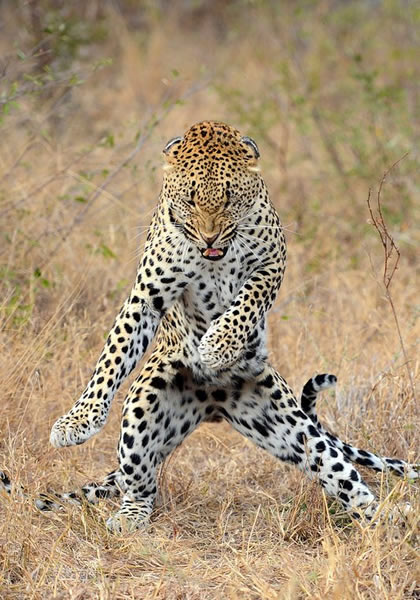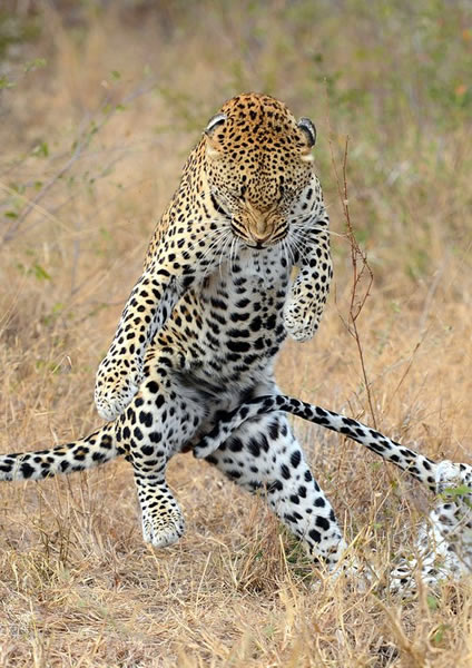 南非一只花豹跳“江南style”吸引异性 来源: 神秘的地球 时间:2012年11月28日 12:29 南非一只花豹跳“江南style”吸引异性 南非一只花豹跳“江南style”吸引异性 南非一只花豹跳“江南style”吸引异性 南非Sabi Sands,一只花豹跳舞吸引雌性的注意力。摄影师Mohammed Alnaser抓拍到这一有趣的一幕,一只花豹为了吸引雌性的注意力,后退站立,晃动着前肢,很像最近风靡全球的“江南style”,这只花豹看起来很有明星范儿。 上一篇 下一篇 TAG: 花豹