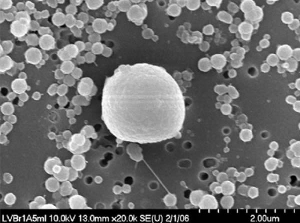 扫描电子显微镜下的细胞,采自南极维达湖的盐水中