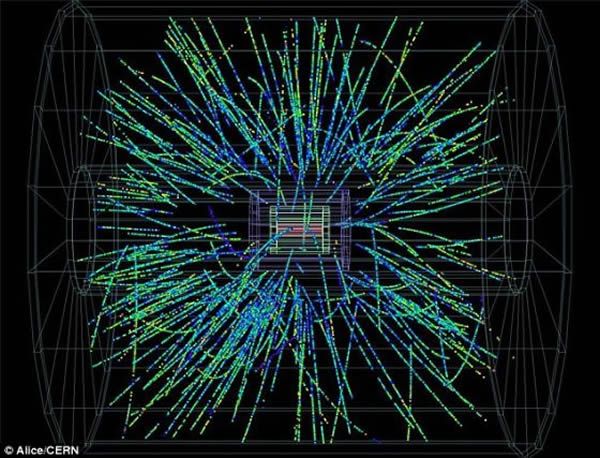 一个质子与铅的原子核发生撞击,Alice探测器中产生一个粒子群。