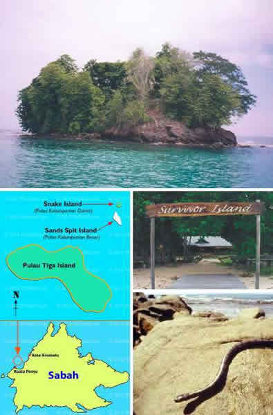 马来西亚沙巴近海的三岛公园由三座小岛组成。最小的一座是加南布尼安达密岛,又名蛇岛,它是当地有毒海蛇交配的地方。频繁在马来西亚加南布尼安达密岛出没的带状海环蛇是一种相对胆小的毒蛇,这种蛇很少咬人,不过偶然踩到也会激怒它们,这种蛇毒的毒性比眼镜蛇毒强3到4倍。