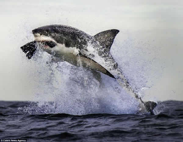 摄影师设下“海豹”诱饵抓拍大白鲨凌空捕猎