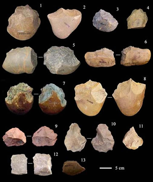 裴树文向记者介绍,旧石器文化时代技术体系可分为五种模式。其中,第一种技术模式发源于非洲,以石核制品(如砍砸器)为特征,并随直立人的扩散传播到欧洲与亚洲,又称奥杜威技术体系;第二种技术模式也出现于非洲,又称阿舍利技术体系。对原料利用、石制品类型及个体大小、剥片技术和修理技术等相关指标的统计分析表明,三峡地区的石器工业属于似奥杜威技术体系。虽然在个别遗址出土了两面修理的石制品,但其缺乏非洲和欧洲等地区典型阿舍利石器工业中通过制坯、成型、修边及薄化处理而成的形态对称且器身薄锐的两面器工具,如手斧和薄刃斧等。