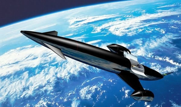由英国科学家设计的空天飞机想象图,装备了两具超级引擎