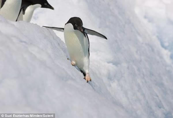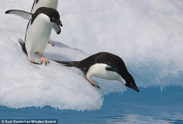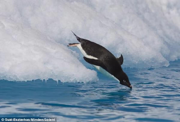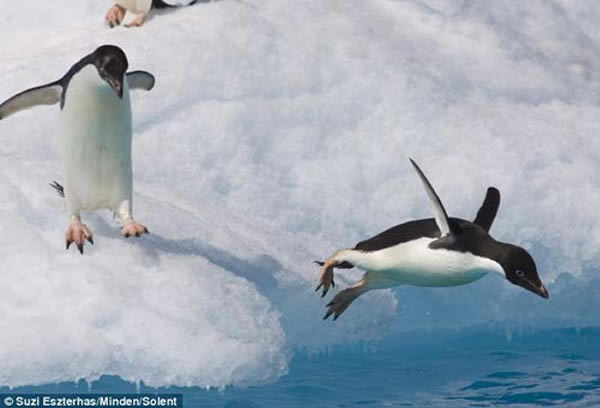近日,美国野生动物摄影师苏齐(Suzi Eszterhas)在南极洲附近海域抓拍到企鹅入水捕食的罕见瞬间。几只阿德利企鹅从海面冰山边缘纵身跳入刺骨的海水中捕食。